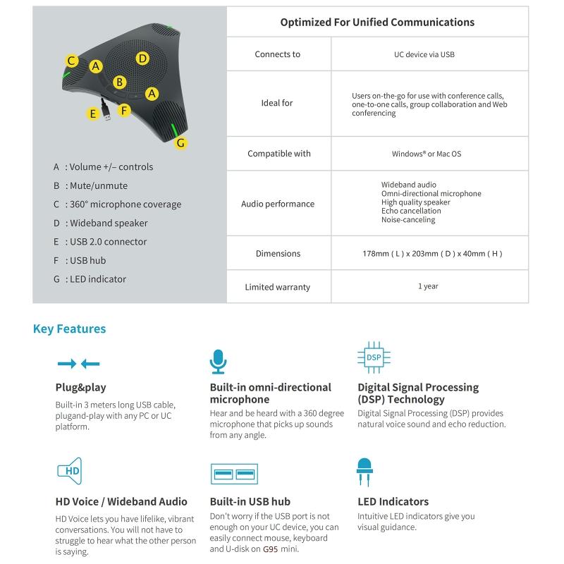 Микрофон имеет всенаправленную диаграмму направленности с расстоянием срабатывания для , что позволяет легко улавливать самые тонкие звуки с направлений и передавать звук более громко и четко.. Участники могут слышать друг друга, не повышая голоса.