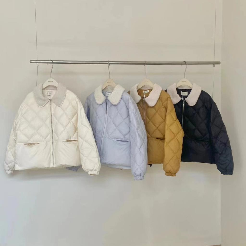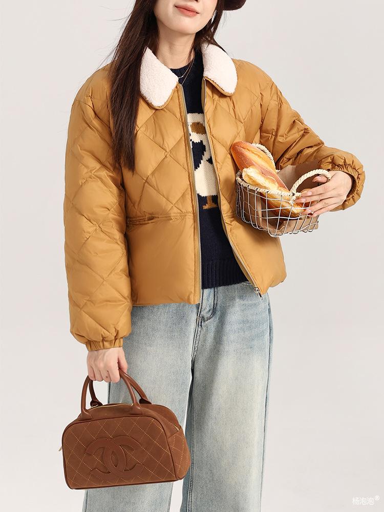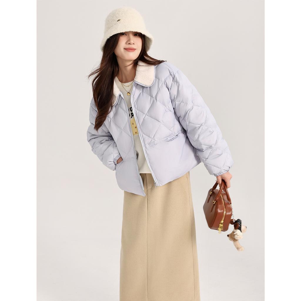 Пуховик женский с воротником из овечьей шерсти и маленьким ромбом, 2024, зимняя новая короткая куртка из белого утиного пуха