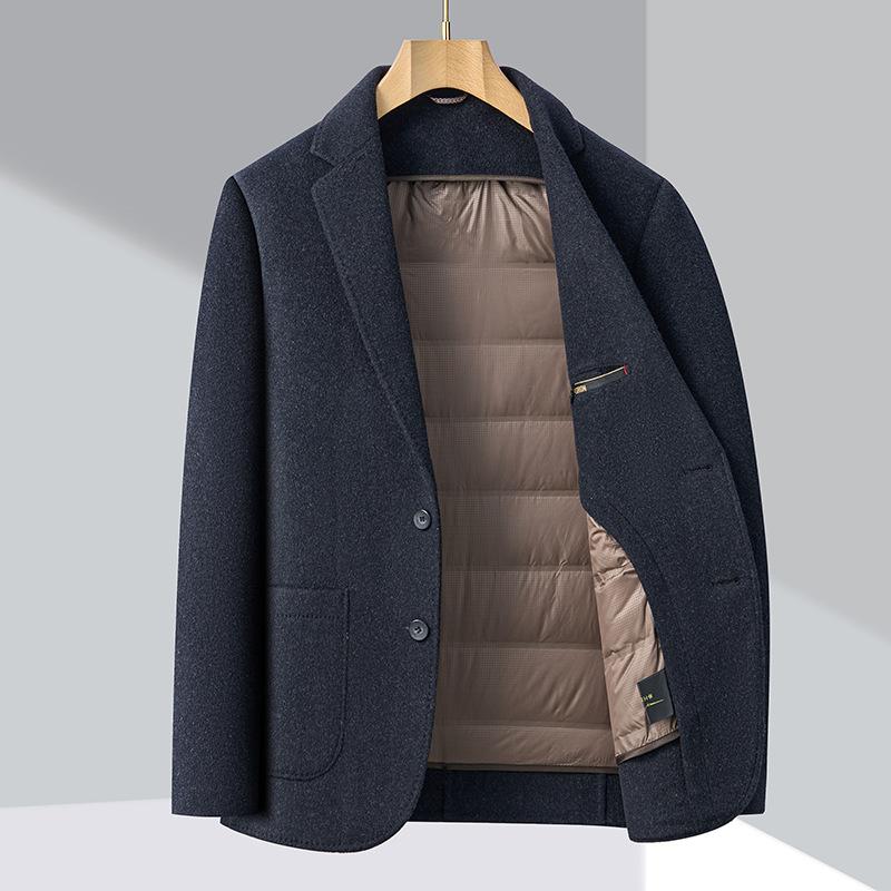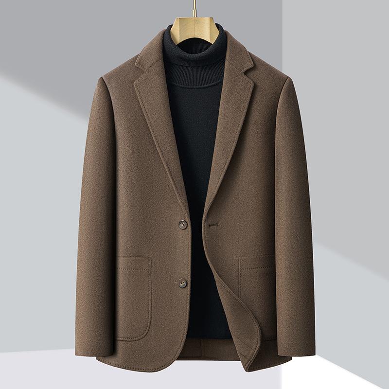 Высококачественный зимний утолщенный мужской двусторонний кашемировый костюм для молодежи и среднего возраста повседневная шерстяная шерстяная куртка-пуховик мужская куртка