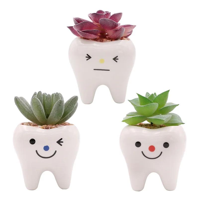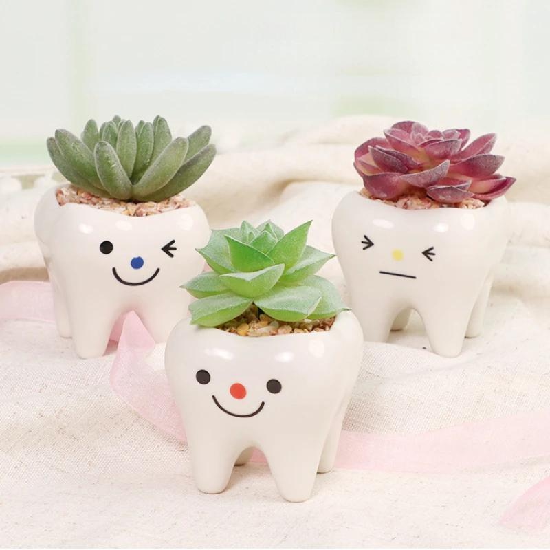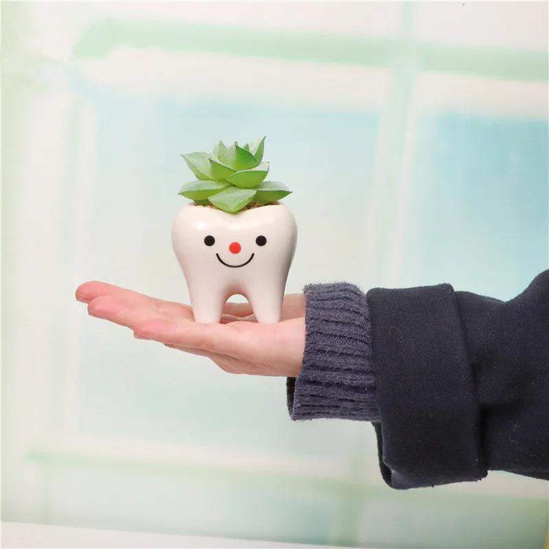 2024 Новый керамический цветочный горшок в форме мини-зуба, симпатичное настольное растение в горшке, креативный цветочный горшок, украшение стола, небольшой орнамент