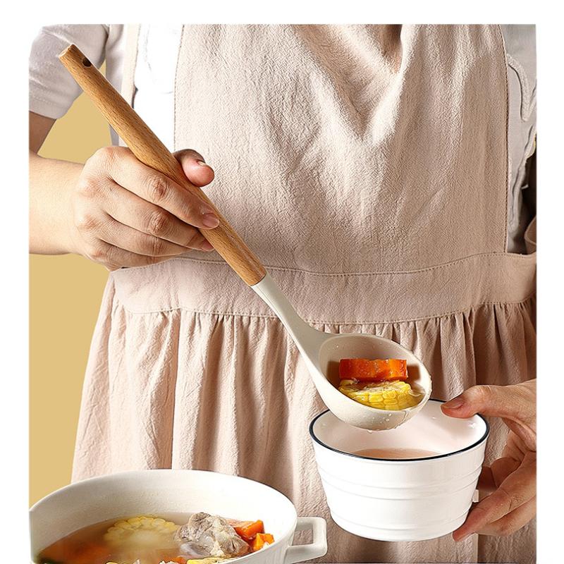 3 шт., пищевая термостойкая лопатка с ручкой из цельного дерева, силиконовая кухонная утварь, антипригарное покрытие, сковорода, набор ложек и лопаток для супа