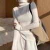 Весна Осень Водолазка с ворсом и рукавами-пальцами Зимний трикотажный базовый универсальный женский топ