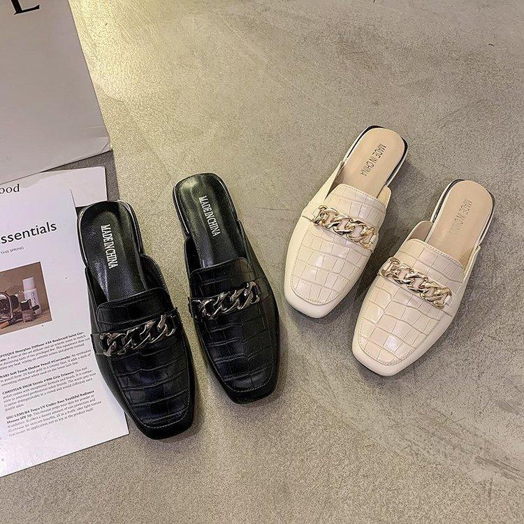 Muller обувь женская 2024 весна-лето новые большие размеры сумка на голову полудраг универсальные квадратные носки низкий каблук классные тапочки