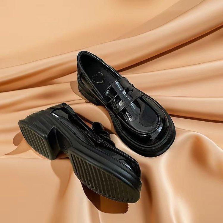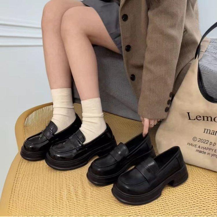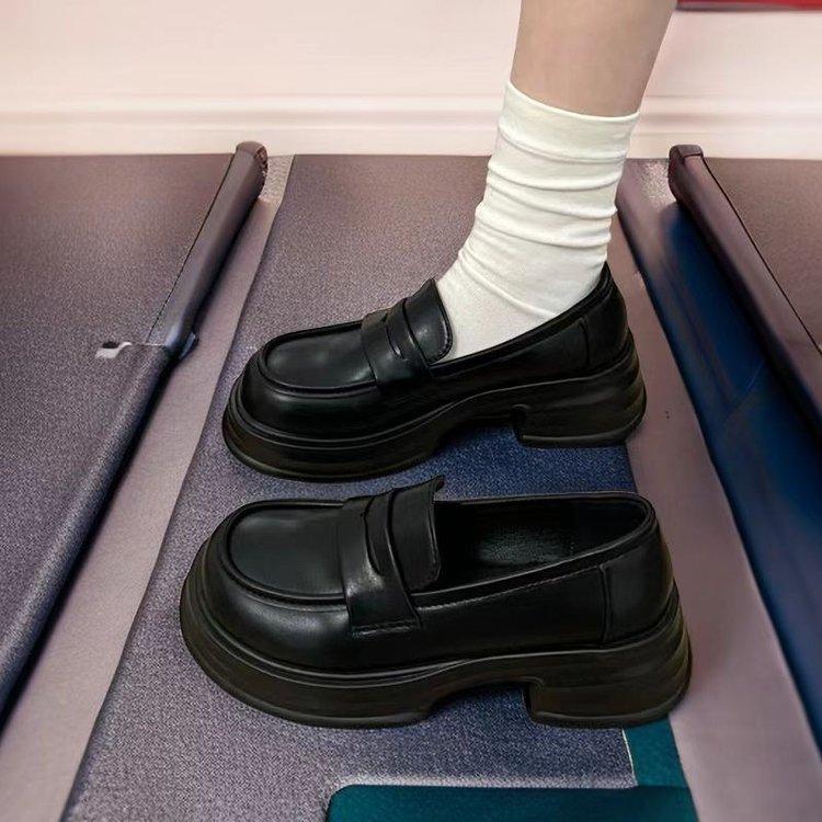 Туфли на круглой платформе женские черные кожаные туфли в студенческом стиле универсальные британские мокасины 2024 модельные туфли jk shoes