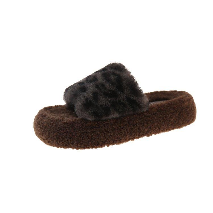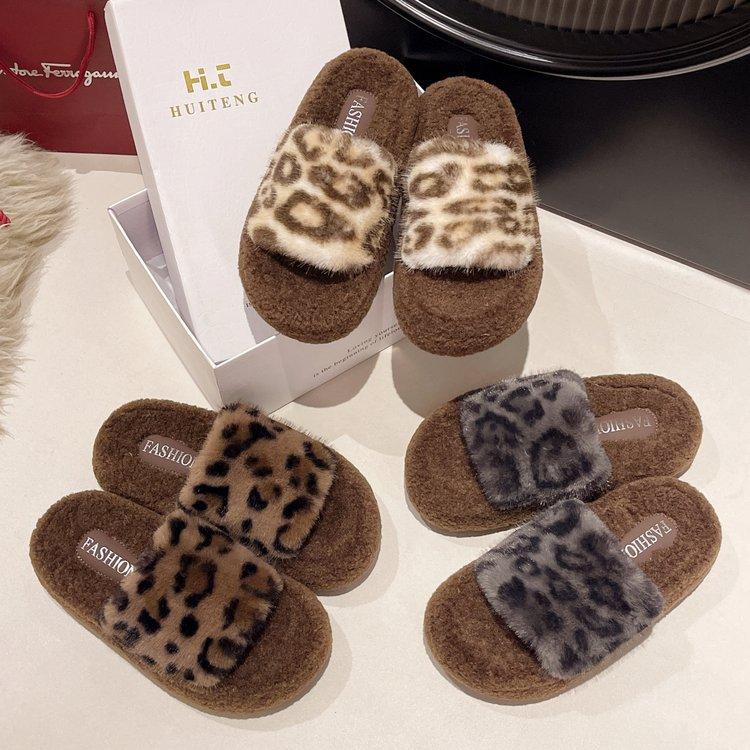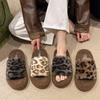 Пушистые тапочки с леопардовым принтом и толстой подошвой, женская модная верхняя одежда 2024 года, новые модные домашние пушистые хлопковые тапочки на осень и зиму