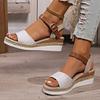 2025 летняя мода большой размер односложные пряжки заклепки маффин соломенные плетеные сандалии на толстой подошве танкетка каблук пляжные женские