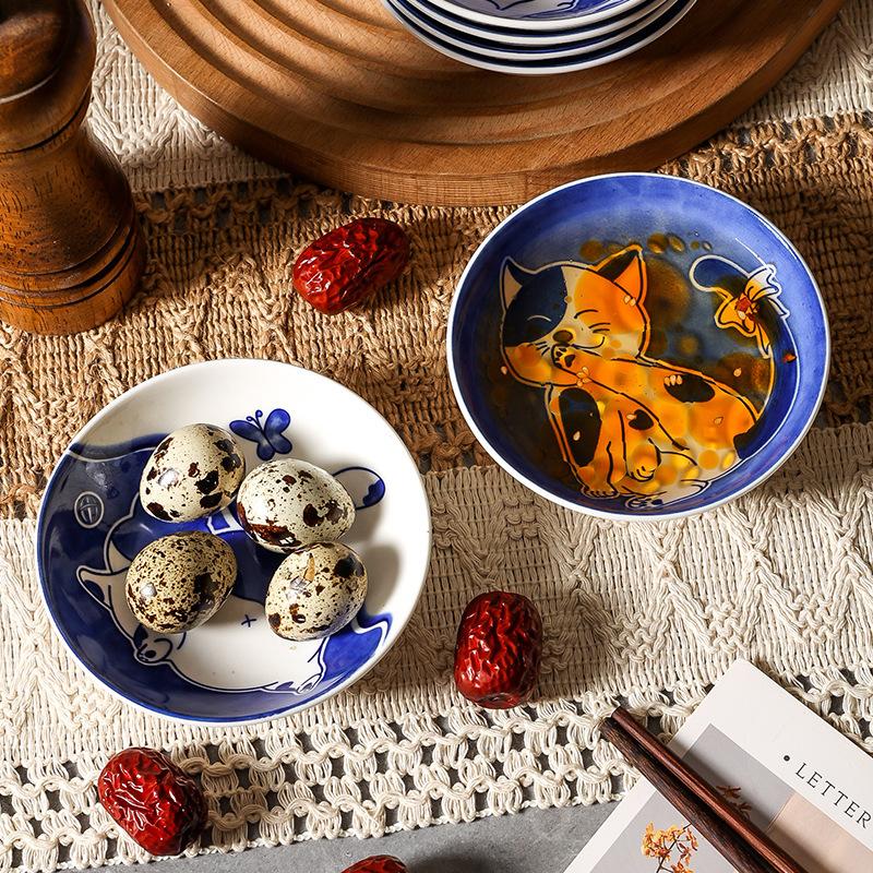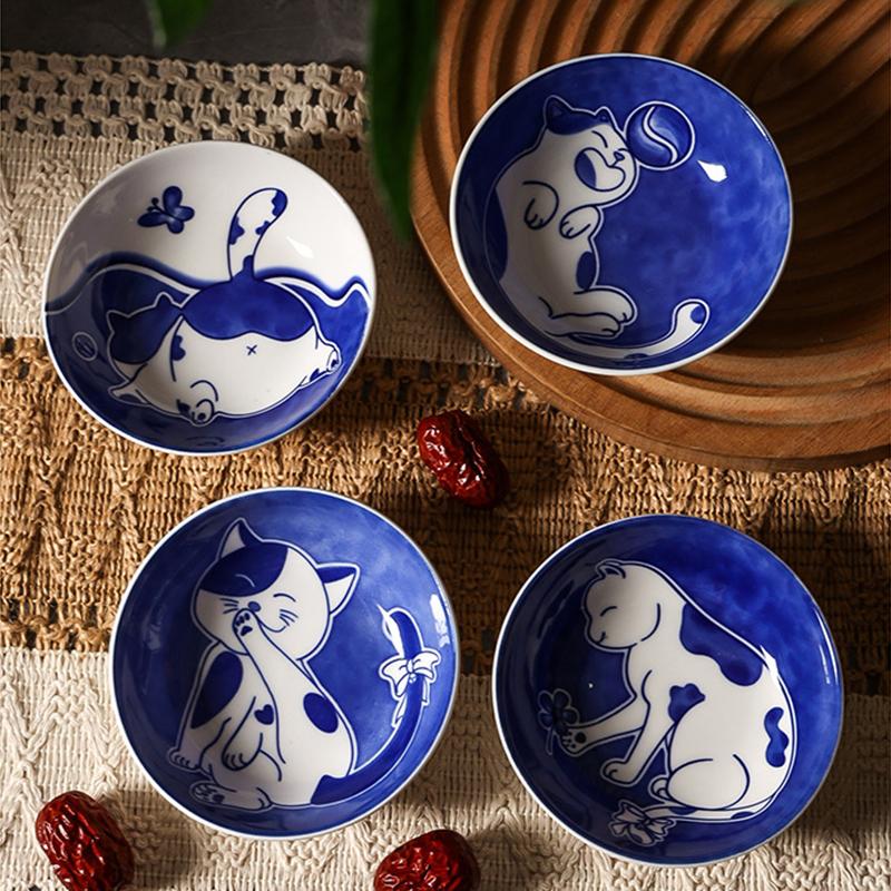 Новый набор из 4 керамических тарелок для соуса для кошек, керамическая бытовая тарелка для соуса для суши, закуски, соус, столовая посуда
