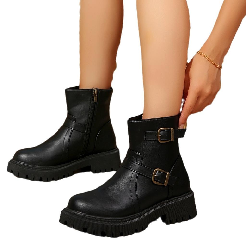 2024 новые осенне-зимние короткие женские ботинки большого размера с квадратным каблуком и пряжкой на ремне ботинки Martin женские женские ботинки большого размера