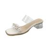 Большие прозрачные босоножки женские на высоком каблуке 2024 года, новый средний каблук, модная универсальная верхняя одежда на толстом каблуке, со стразами, классные тапочки