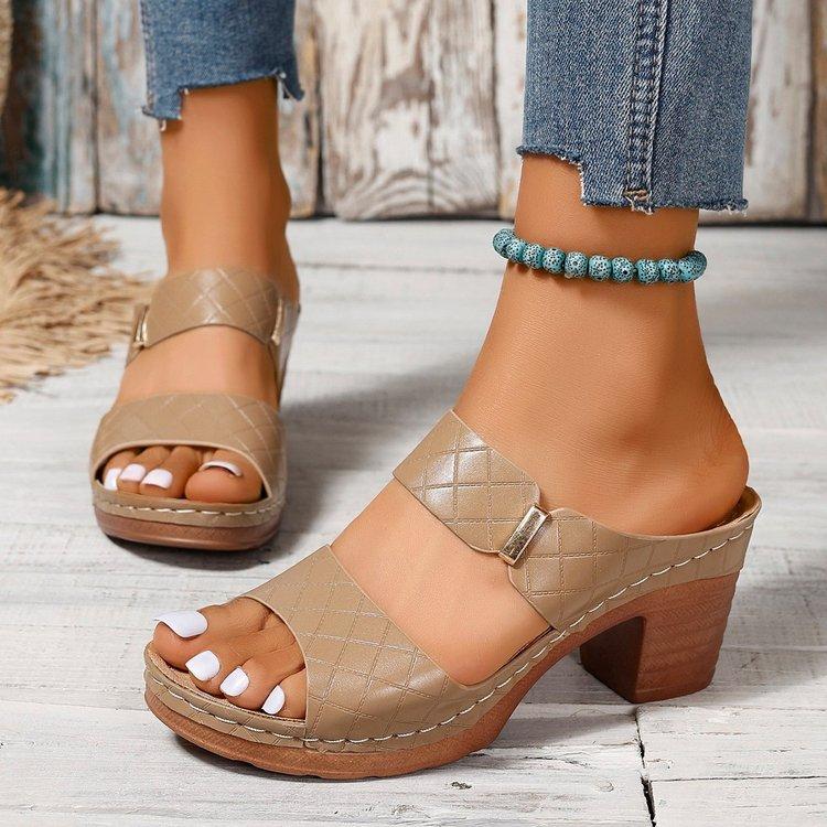 Туфли на высоком каблуке женские летние 2024 новые большие модные тапочки с толстым каблуком и рыбьим ртом