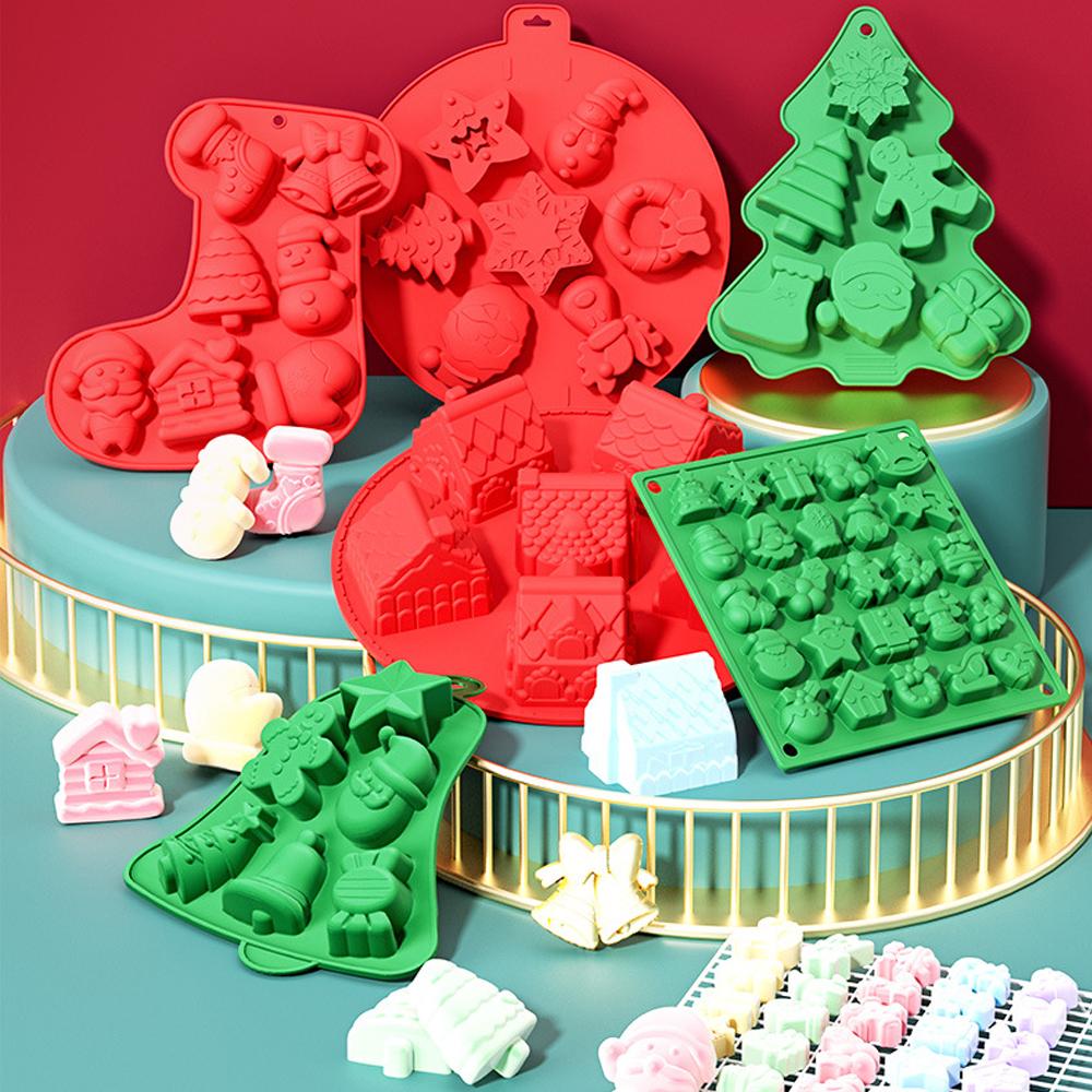 Рождественские силиконовые формы для шоколада, формы для выпечки конфет, форма для снежинок, снеговиков, рождественских елок, инструменты для изготовления конфет и тортов, декор для вечеринок