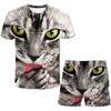 Повседневный комплект с принтом кота для девочек, летние модные шорты с короткими рукавами и принтом в виде мультфильма, комплекты одежды для девочек с 3D-принтом