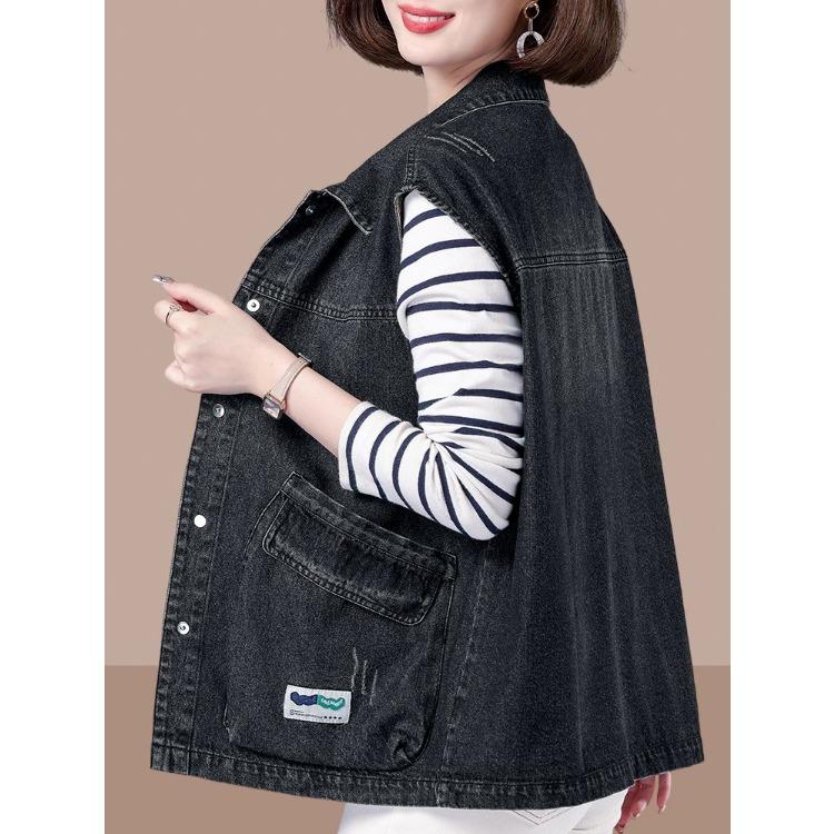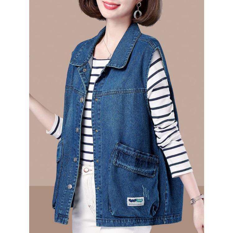 Весна и осень новый женский джинсовый жилет средний возраст мама свободный повседневный жилет большого размера пальто