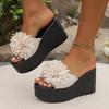 2024 лето новая летняя одежда на танкетке с толстой подошвой тапочки-маффины женские большие размеры модные цветочные тапочки женские