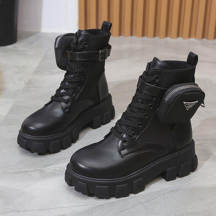 2024 осень и зима новые большие размеры ботинки Martin короткие с боковой сумкой британский стиль модные женские ботинки на платформе локомотив