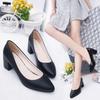 Модные туфли на грубом каблуке женские, весна 2024, новые, заостренные рабочие туфли с неглубоким носком, на высоком каблуке, простые