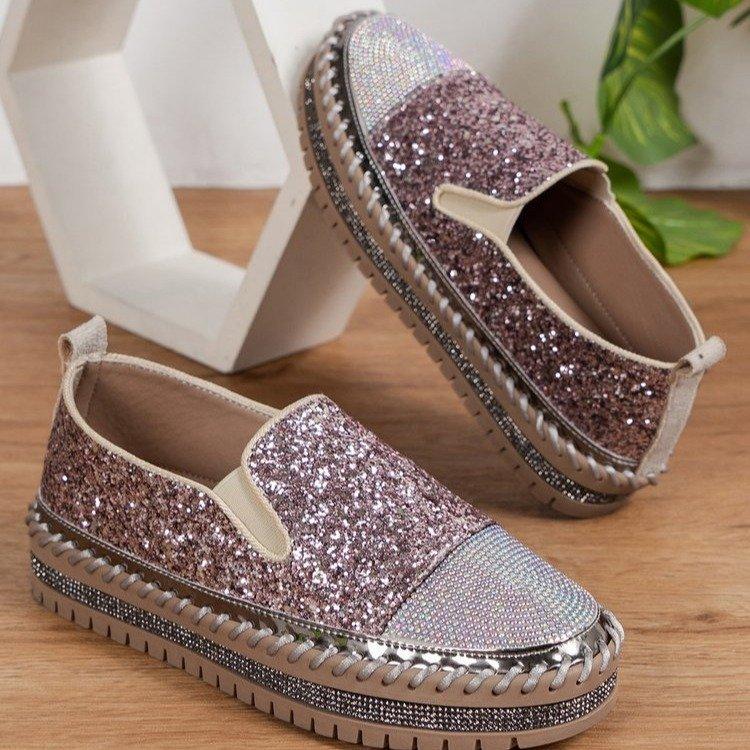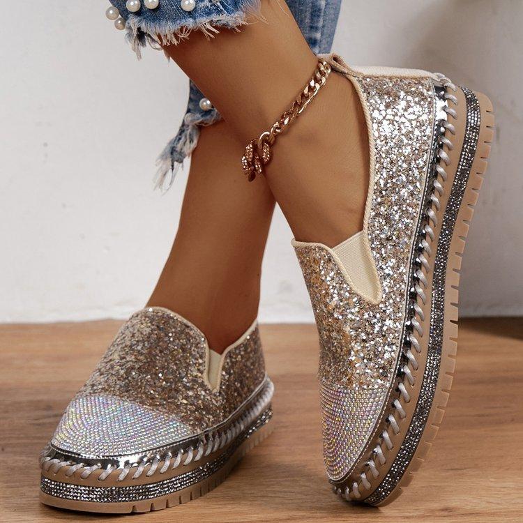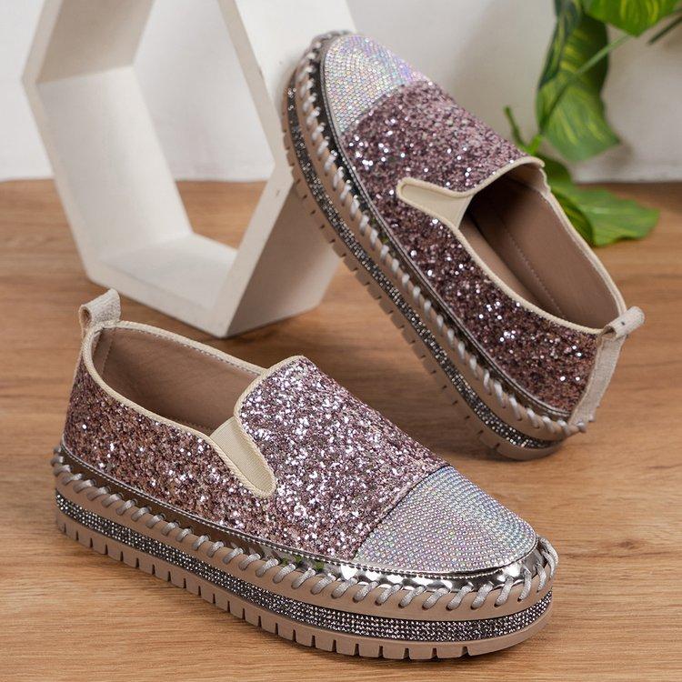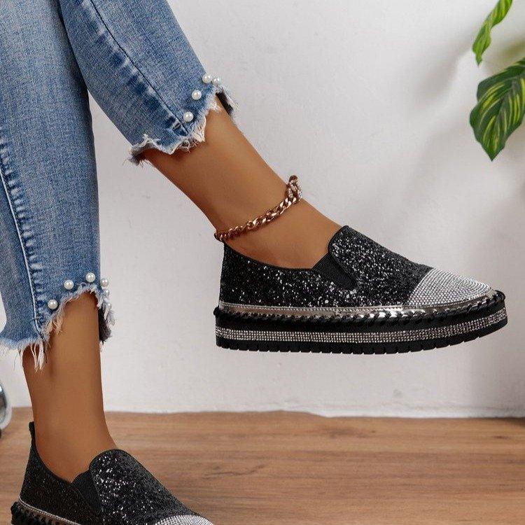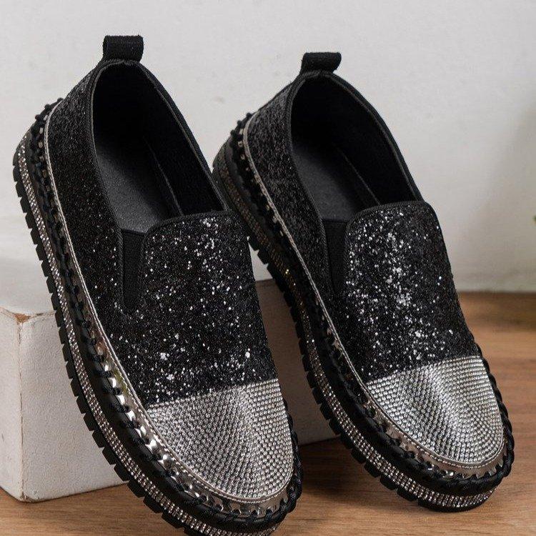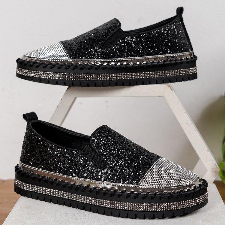 Большие размеры повседневные одинарные туфли женские весна 2024 новые модные женские туфли на толстой подошве с плоским дном со стразами