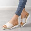 Большие тапочки с наклонным каблуком, новые женские тапочки с открытым носком, однотонные, соломенные, на толстой подошве, большого размера, лето 2024 г.