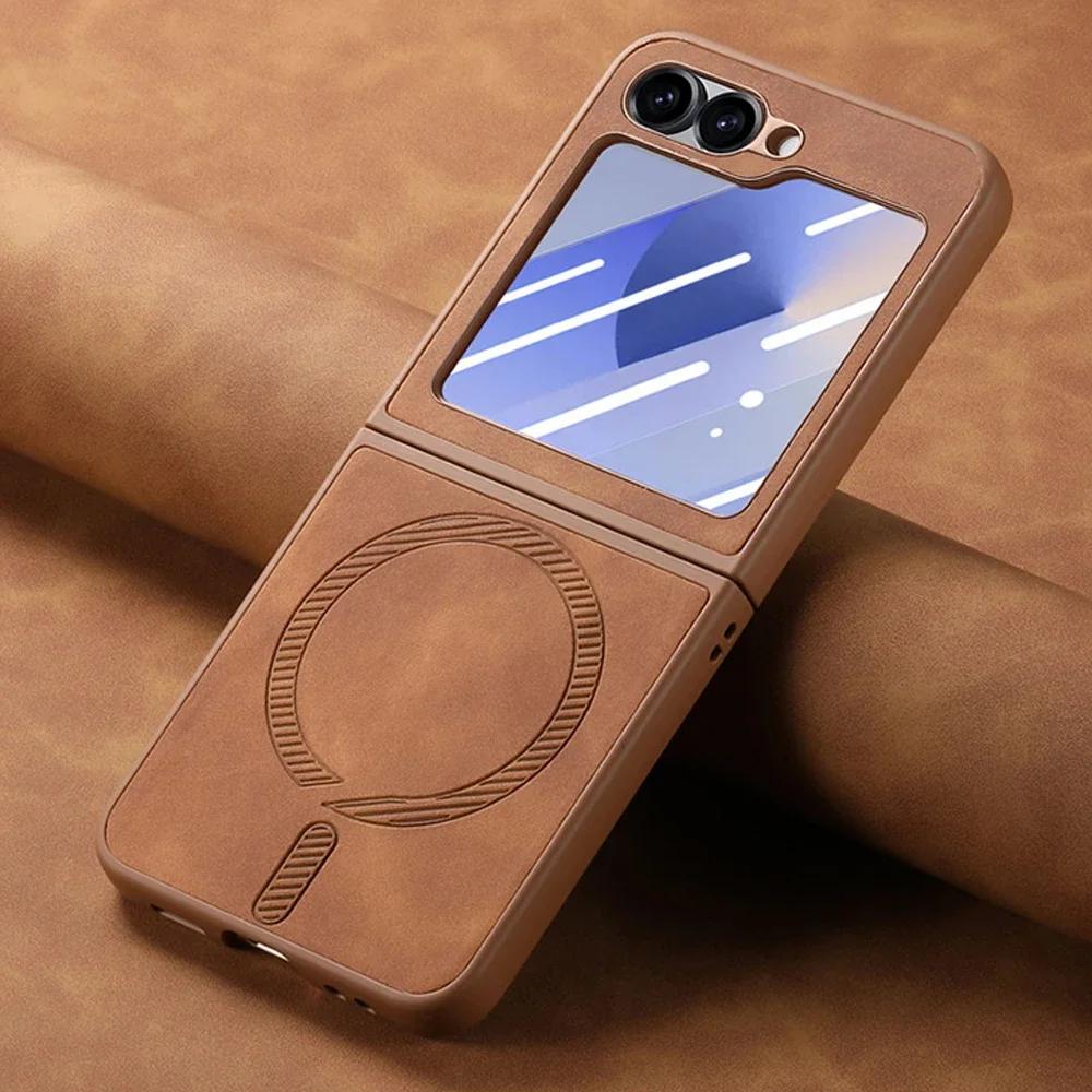 Чехол Magsafe для Samsung Galaxy Z Flip 6 5 4 Матовый кожаный чехол для телефона Samsung Z Flip4 Flip5 Flip6 Защитные чехлы с защитой экрана