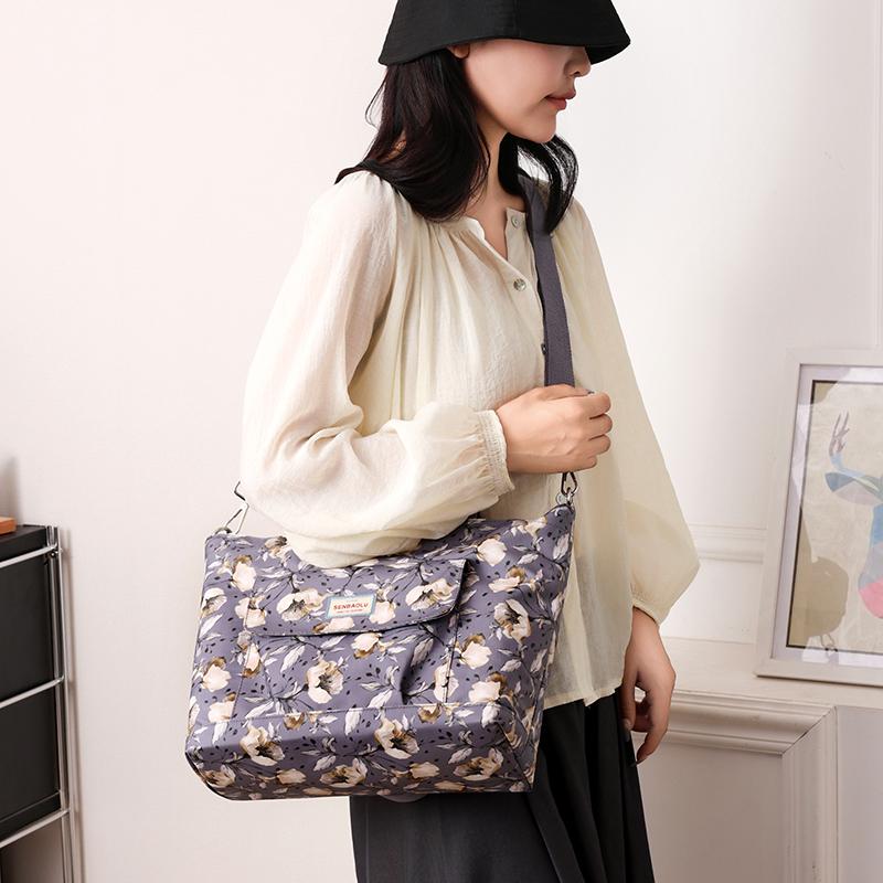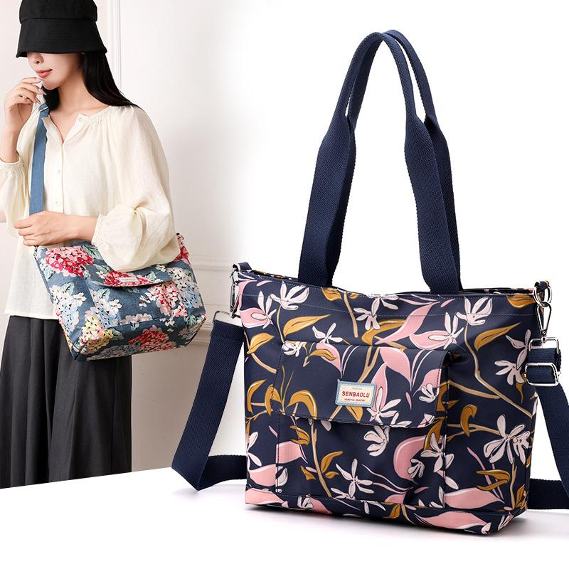 Женская сумка-тоут с принтом, легкая, вместительная, из нейлона, через плечо