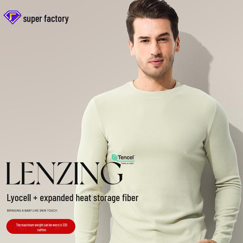 Мужской теплый двусторонний флисовый топ Tencel: Утолщенный, бархатный, с круглым вырезом, однотонный, идеально подходит для осени и зимы.