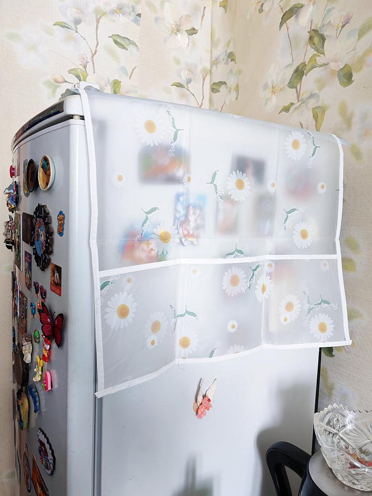 Пылезащитная накидка с карманами для холодильника🌱 Всем солнечный приветик! Заказала для родителей накидочку на холодильник! Подошла идеально и очень удобно использовать, можно в кармашки положить всё что угодно, например, пульт от телевизора, кухонные принадлежности, блокнотик, телефон, деньги! Размер 130см х 54 см. Ткань прочная, водонепроницаемая. Принт "Ромашки". У продавца на выбор несколько расцветок и размеров (указаны на фотографиях). 6 кармашков (с каждой стороны по 3), в кармашек помещается ладонь. Края и кармашки обработаны хорошо. Также можно использовать и на стиральную машинку и на стол, например, шейный столик. Товар и продавца рекомендую всеми ручками👍🏼! Спасибо продавцу и любимому Джум! Всем приятных покупок!