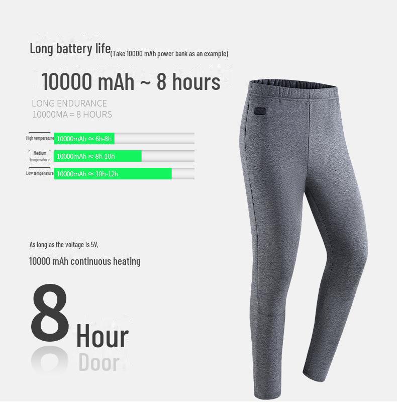 Сохраняйте комфорт в холодные месяцы с этими брюками с подогревом через USB, которые оснащены теплой бархатной подкладкой и передовой технологией подогрева в 30 зонах.. Брюки, предназначенные как для осени, так и для зимы, изготовлены из прочного полиэстера с однотонным рисунком и длинными рукавами для максимальной защиты и комфорта.. Эти брюки идеально подходят для активного отдыха на свежем воздухе или отдыха в помещении. Они обеспечивают постоянную температуру, сохраняя тепло и комфорт, куда бы вы ни пошли.
