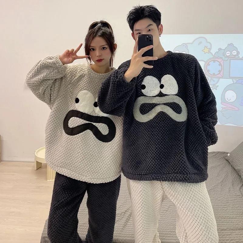 Новая коралловая бархатная пижама для пар, женская утолщенная осенне-зимняя пижама, плюс бархатная фланель, мужской круглый воротник, домашний костюм