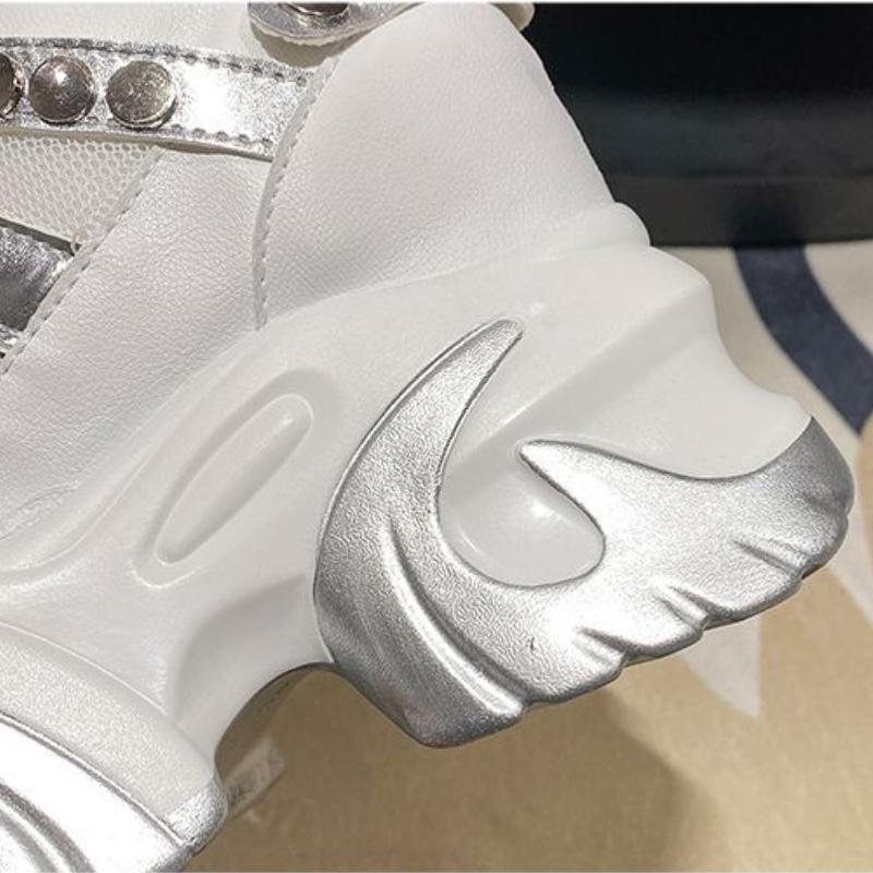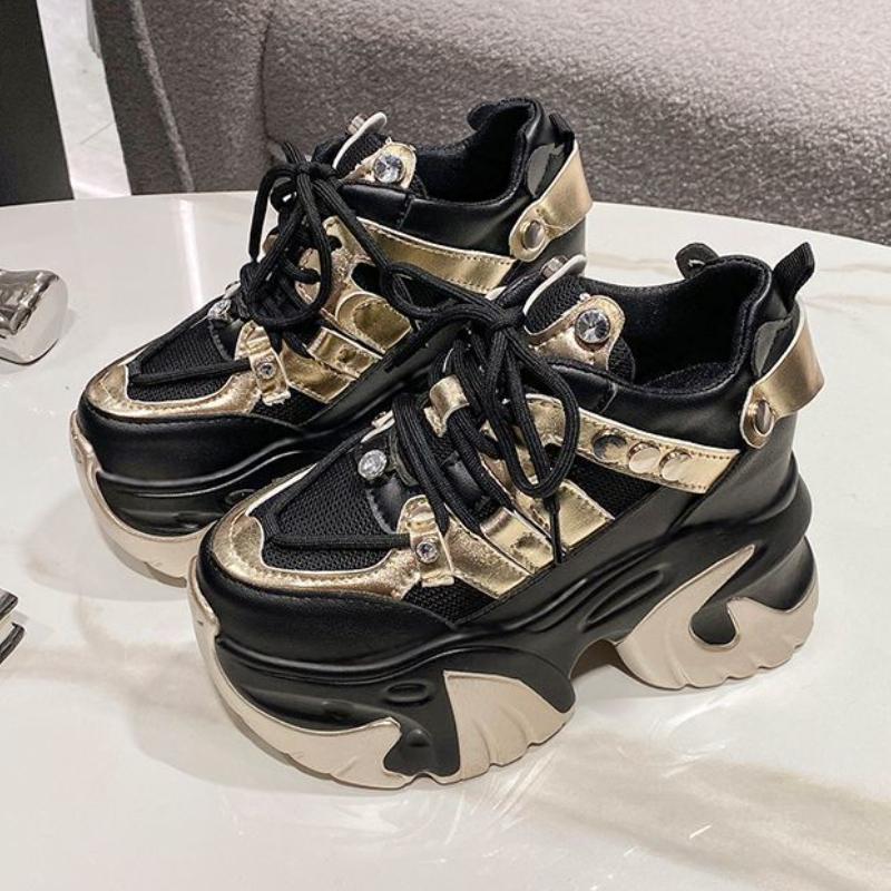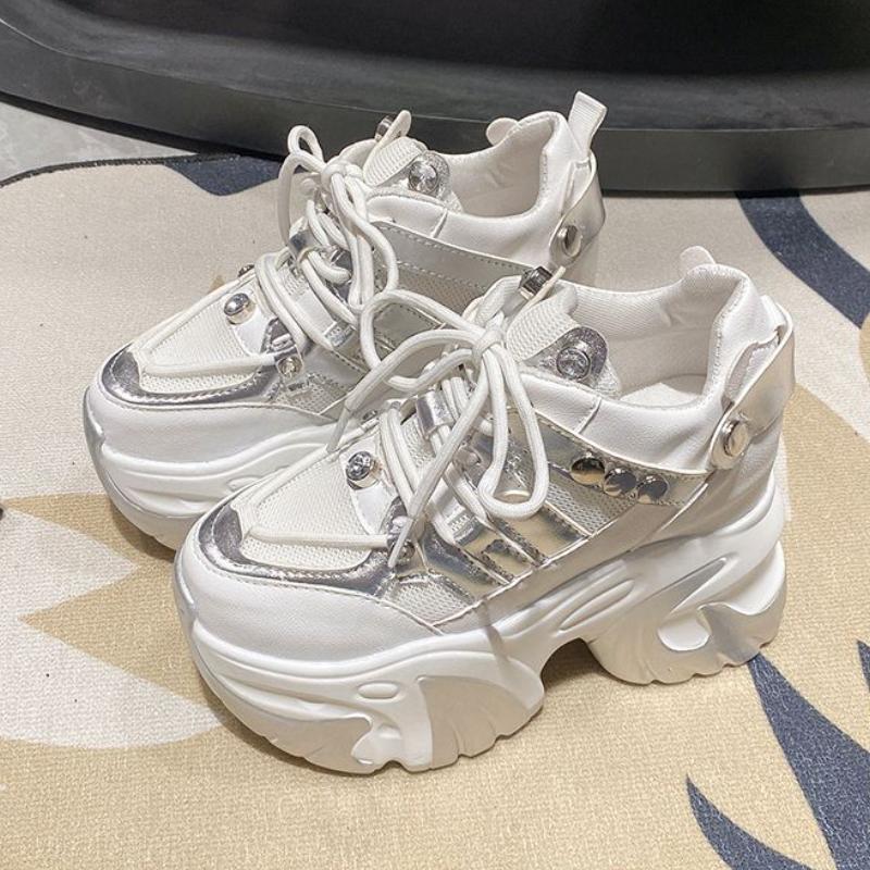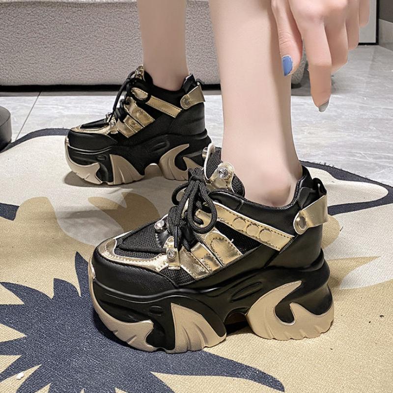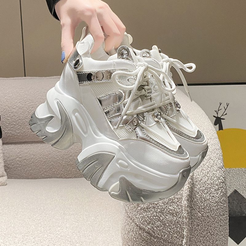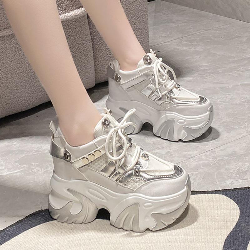 Женские кроссовки на массивном каблуке 10 см, спортивная обувь на высокой платформе со шнуровкой, женские кожаные кроссовки с дышащей сеткой