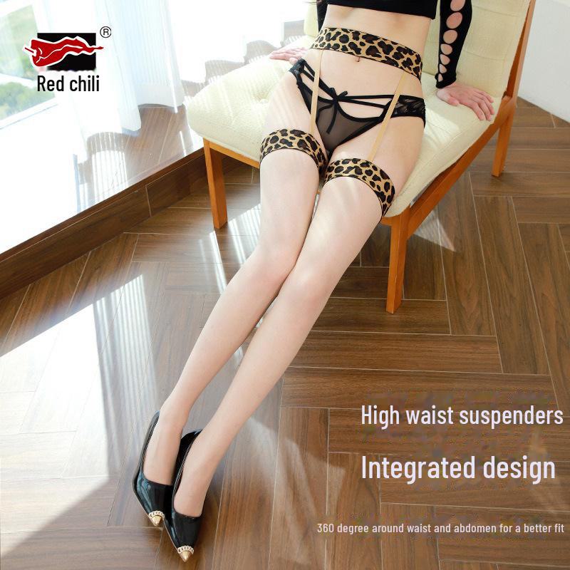Чулки длиной до бедра с леопардовым принтом Red Pepper: Сексуальные черные шелковые женские летние носки с подвязками