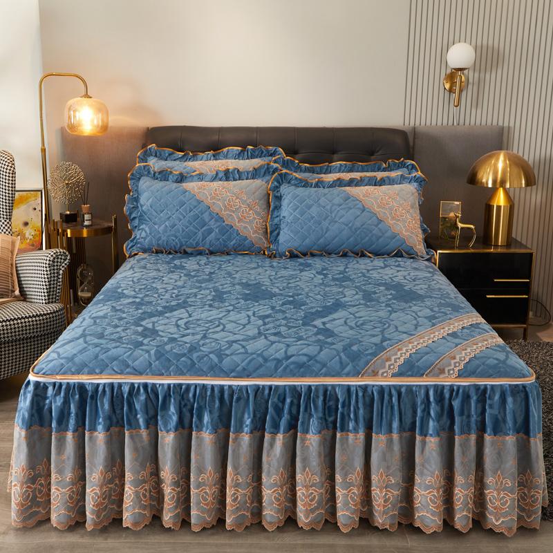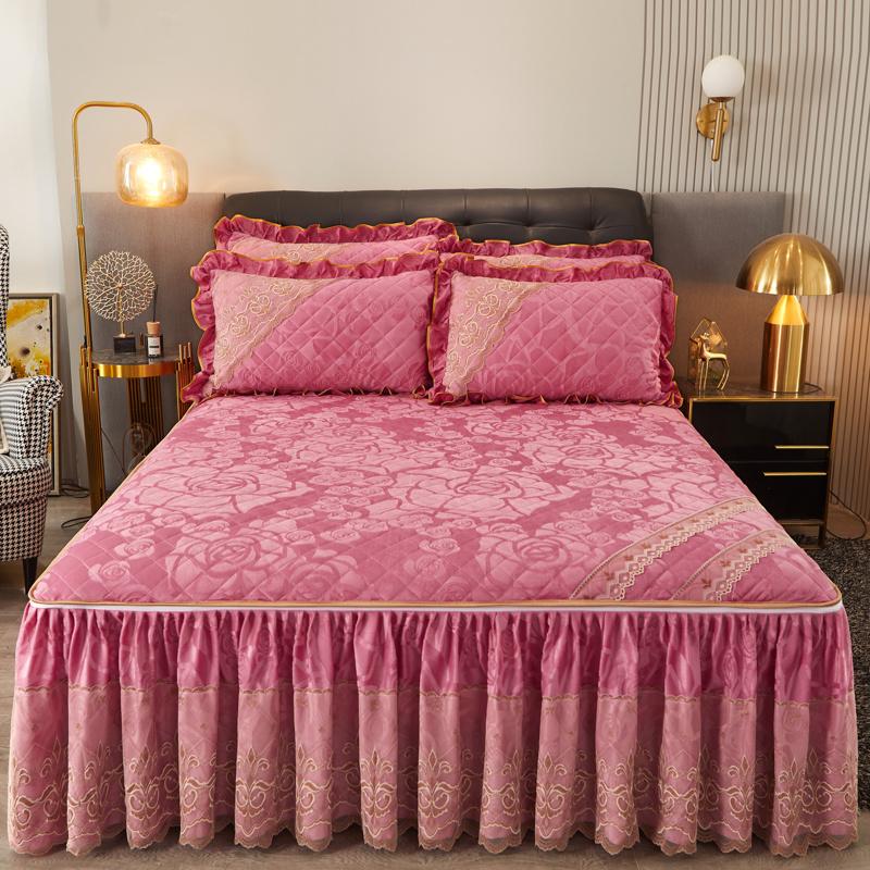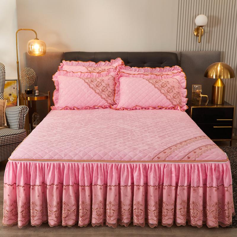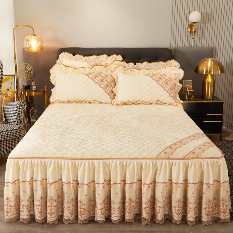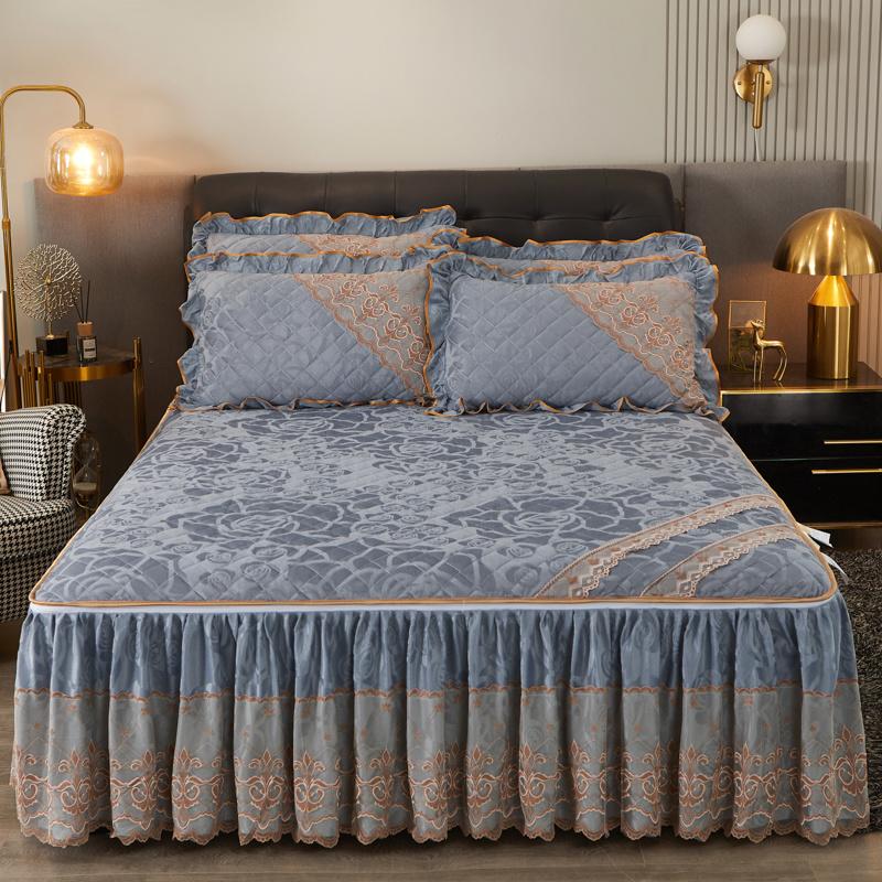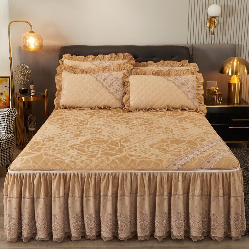 Зимняя кружевная бархатная простыня на резинке, подзор для кровати, встроенное покрывало, съемное и моющееся стеганое короткое плюшевое покрывало для кровати
