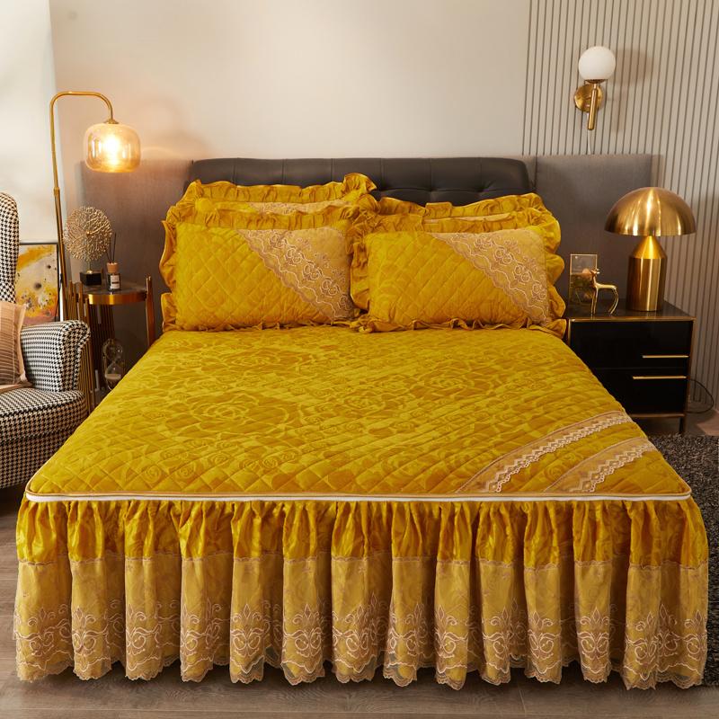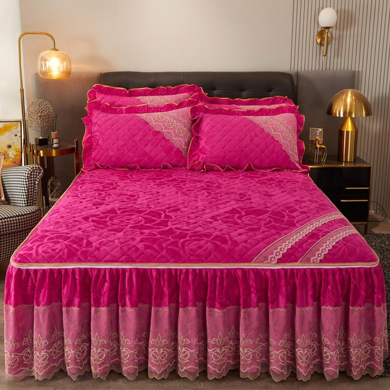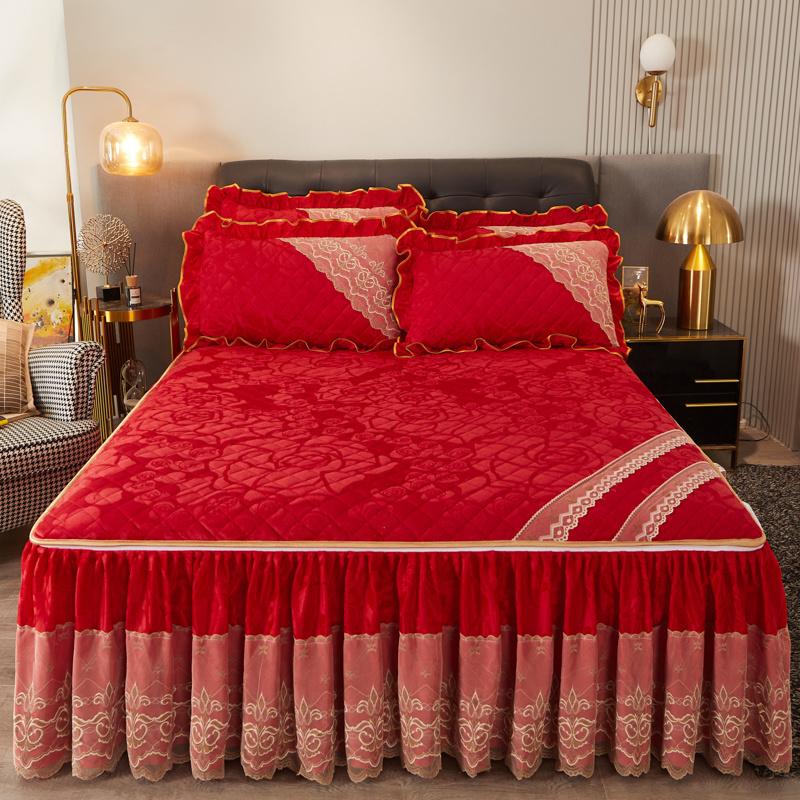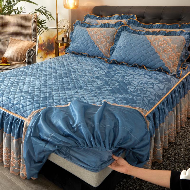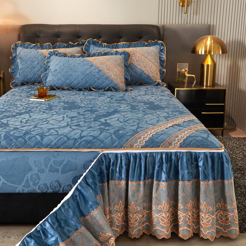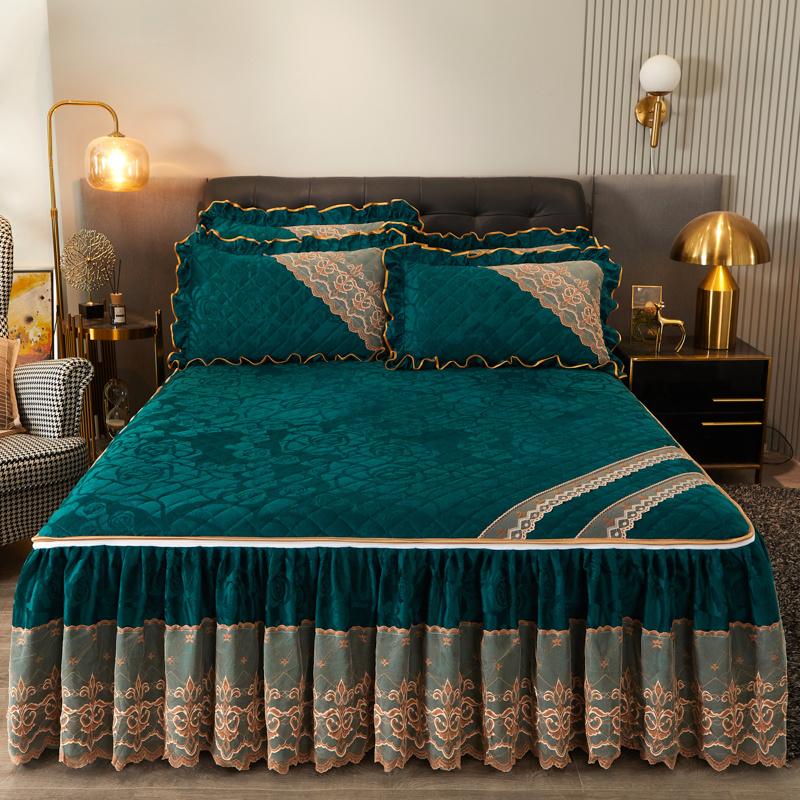 Зимняя кружевная бархатная простыня на резинке, подзор для кровати, встроенное покрывало, съемное и моющееся стеганое короткое плюшевое покрывало для кровати