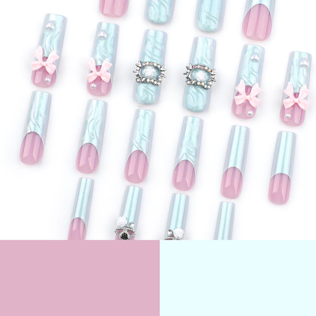 24 шт. 3D французский маникюр накладные ногти часть трехмерный розовый бант накладные ногти кошачий глаз сверло съемный ноготь