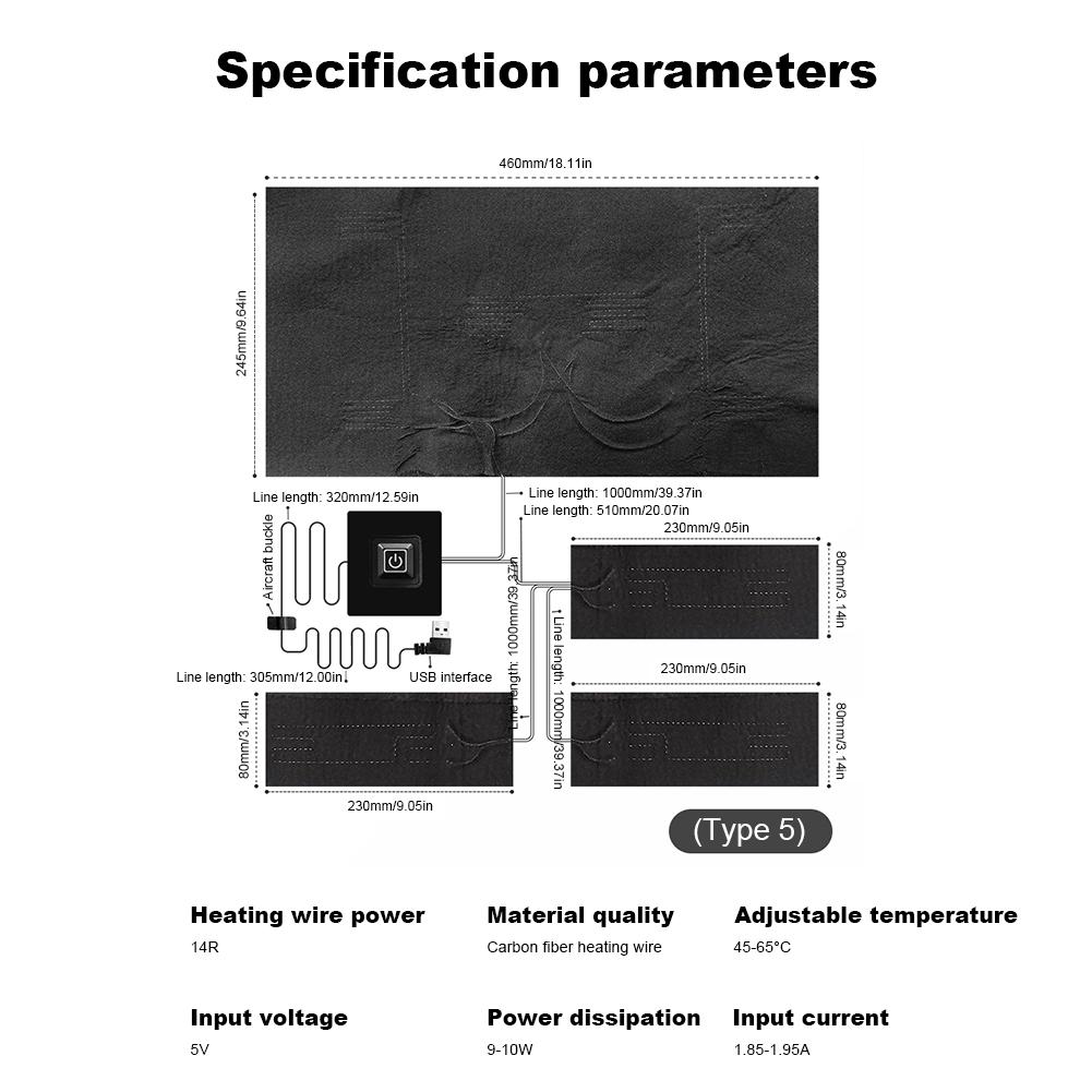 Водонепроницаемый терморегулятор USB-нагреватель с 3 передачами, регулируемый электрический нагревательный лист, самодельная теплая одежда для кемпинга, пешего туризма