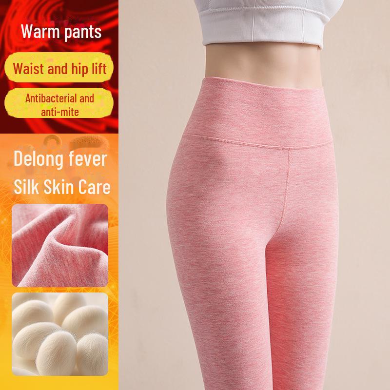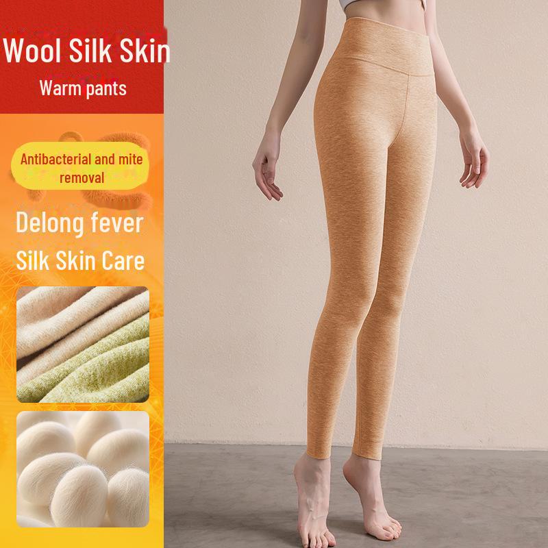 Женские бесшовные термобрюки с высокой талией из бархата - плотная, мягкая, хлопковая шерсть для осенней носки