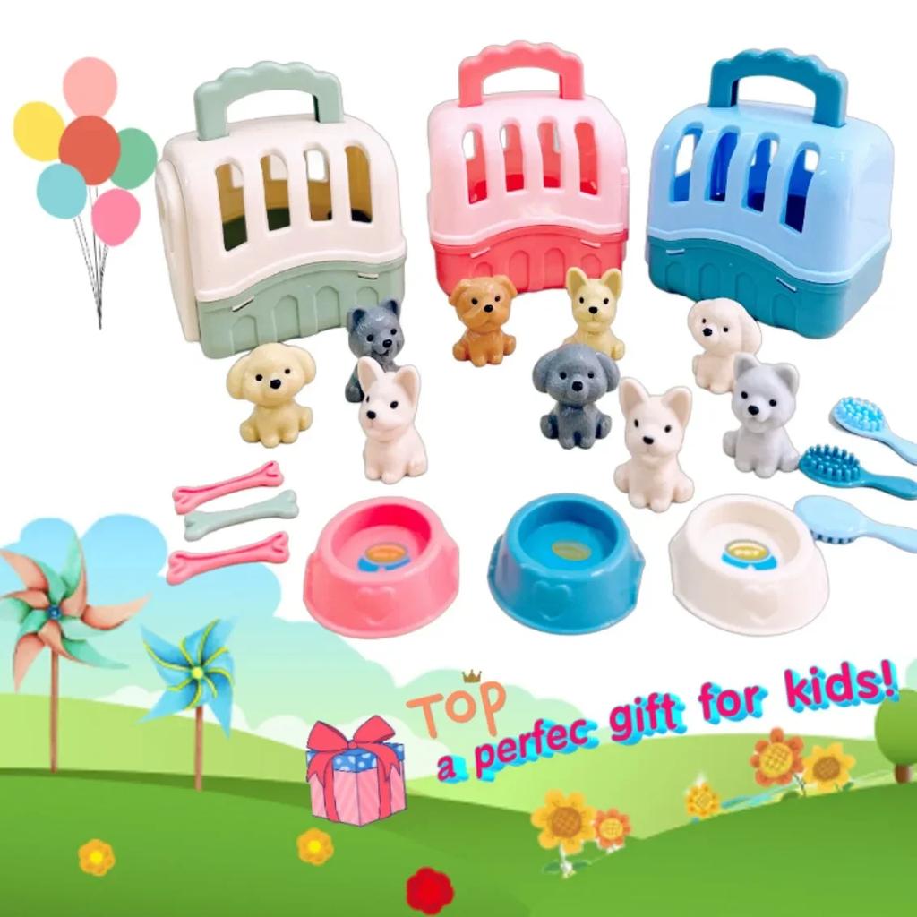 8 шт./набор детских игрушек для дома, корзина для собак, набор кукол для собак, клетка для собак, кормление домашних животных, щенки и кошки принимают душ