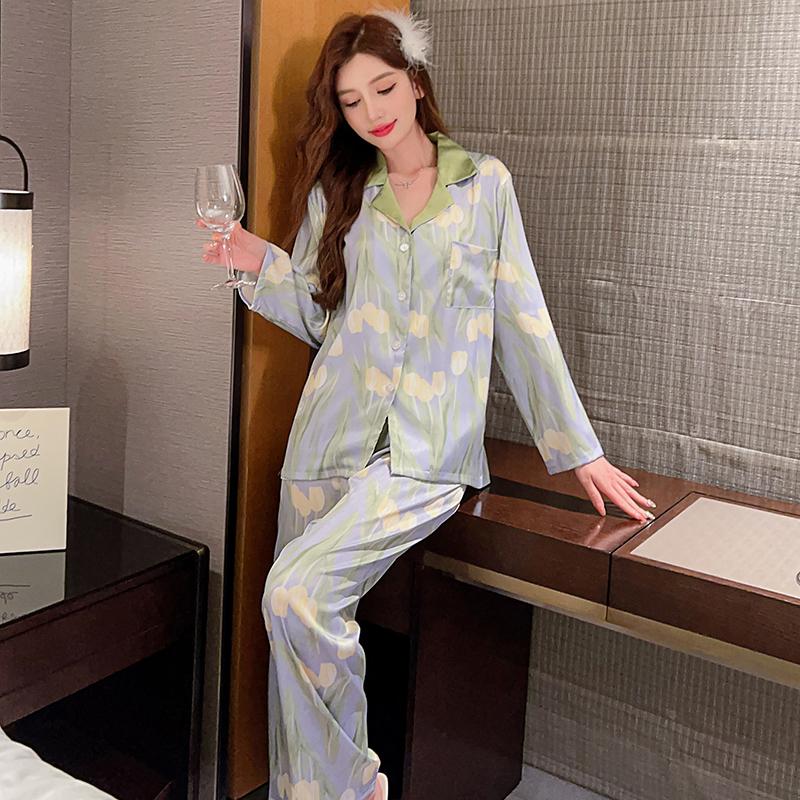 Свежая литературная женская пижама с принтом тюльпанов, элегантная французская пижама из твила с узором «елочка», новая ночная рубашка для женщин 2000 года