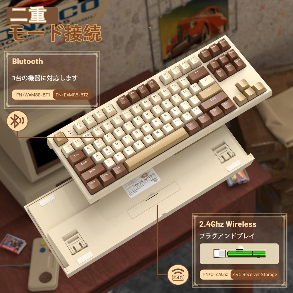 [Поддержка двухрежимного режима и поддержка переключения между несколькими устройствами] Двухрежимная клавиатура M88 поддерживает два режима: Bluetooth и беспроводное соединение 2,4 ГГц. Вы можете легко переключиться на соединение Bluetooth, нажав клавишу FN и «W» или «E» три раза.. Вы также можете переключиться на беспроводное соединение 2,4 ГГц, коротко нажав FN+"Q". Приемник 2,4 ГГц — это приемник двойного назначения USB и Type-C, который хранится в нижней части клавиатуры и может быть легко извлечен, когда вы захотите его использовать.. Беспроводная клавиатура M88 совместима с различными устройствами и операционными системами, такими как Windows 8/10/XP/2000, Android, iOS, Mac и т. д.. Работает со всеми мобильными устройствами, включая настольные компьютеры, ноутбуки, смартфоны и планшеты.. Он также идеально подходит для повседневного использования, например, для удаленной работы, игр и развлечений.
