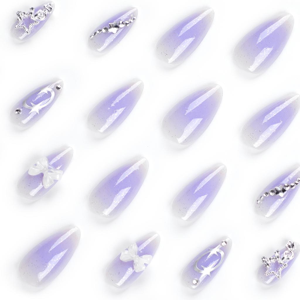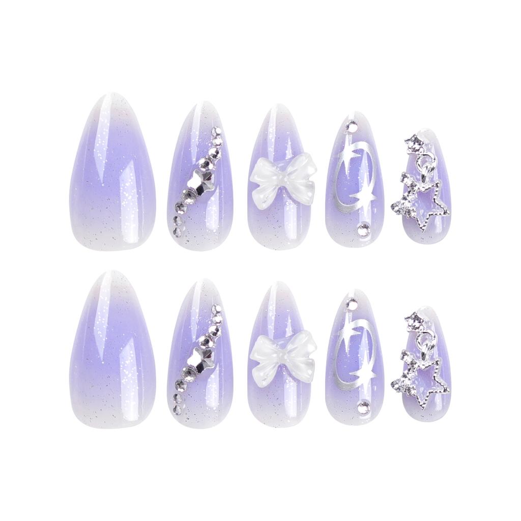 Набор из 24 фиолетовых маникюрных элементов, накладные ногти в виде звезд, банты, европейские и американские накладные ногти, накладные ногти, наклейки для ногтей.