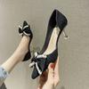 Женские туфли на высоком каблуке 2024 года, весна-лето, новые полые туфли на шпильках с заостренным жемчужинами и бантом, вечерние туфли-лодочки, женские босоножки