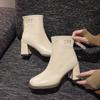 2024 Осень и Зима Новые Ботинки в Британском Стиле с Квадратным Носком Модные на Толстом Каблуке с Женской Задней Молнией