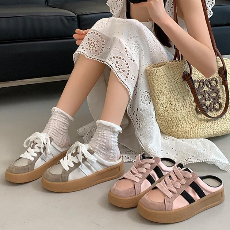 Полушлепанцы с толстой подошвой в стиле ретро баотоу женские летние 2024 новинка ленивые слипоны универсальная повседневная обувь — купить товар онлайн с бесплатной доставкой по всему миру!