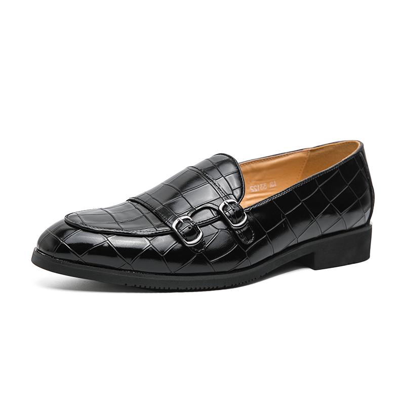 Новые мужские мокасины-монки из искусственной кожи, однотонные, с круглым носком, с двойной пряжкой, с каменным узором, модные, деловые, повседневные, для вечеринок, на каждый день, мужские туфли