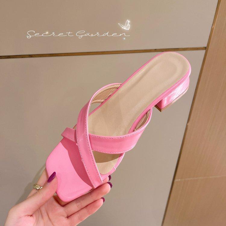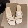 Внешняя торговля Большой размер Сандалии 2024 Лето Новая мода Крест Квадратный носок Толстый каблук Шлепанцы Женские
