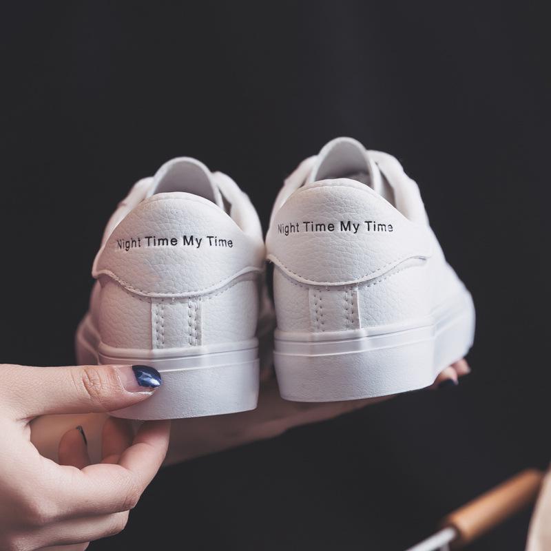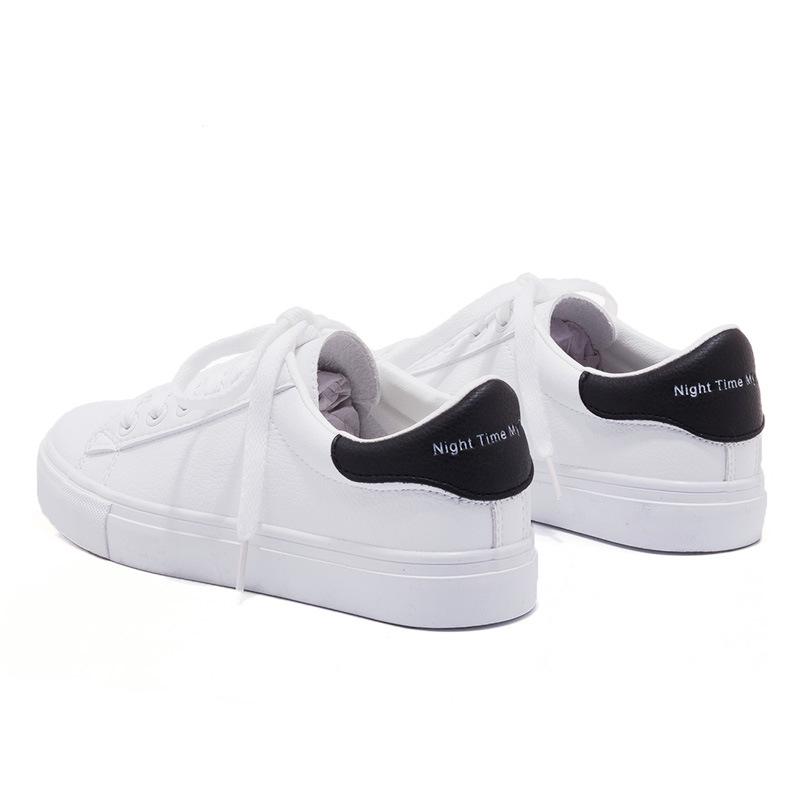Модная обувь, женская обувь из вулканизированной кожи, новая весенняя базовая повседневная обувь белого цвета, женская обувь из искусственной кожи на плоской подошве со шнуровкой, студенческие кроссовки