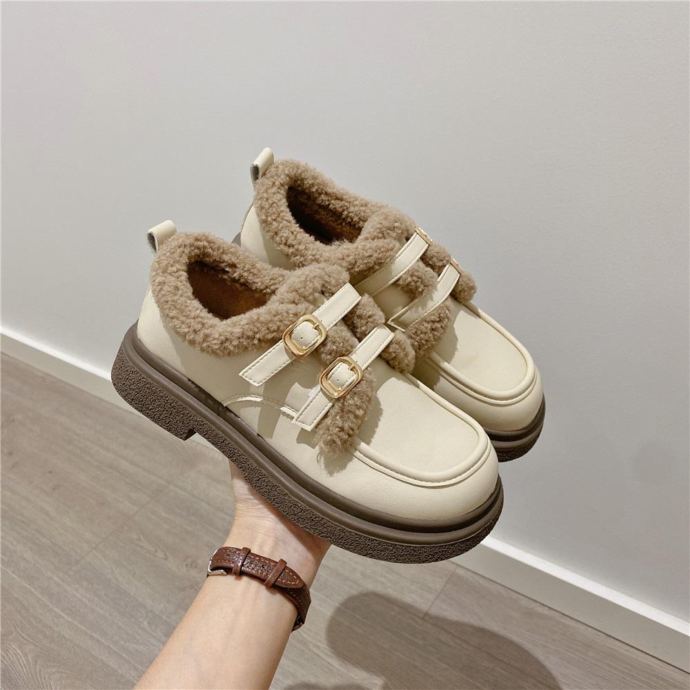 Женские плюшевые туфли из кожи, осень-зима 2024 г., новые теплые, удобные, нескользящие, хлопковые туфли на плоской подошве, повседневная обувь для вечеринок