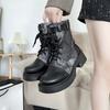 Женские ботинки 2024 года, осенний новый тренд, теплые ботинки в стиле ретро, тканевые, с круглым носком, на шнуровке, на толстой подошве, увеличивающие рост, с ремнем и пряжкой, ботильоны