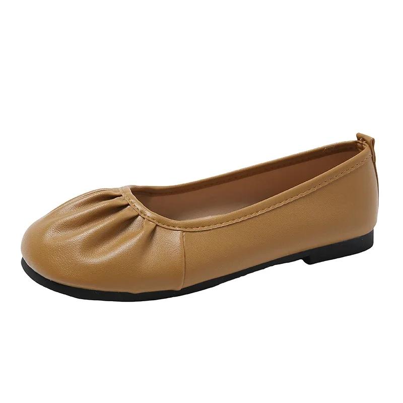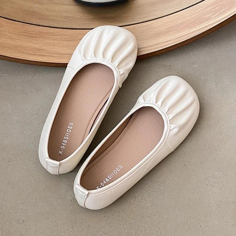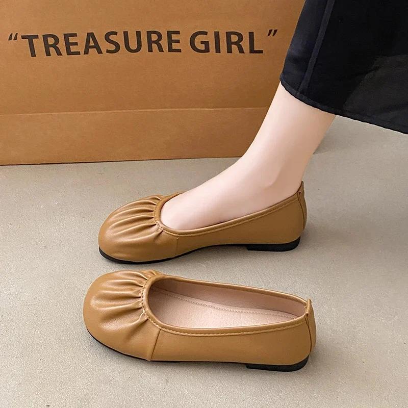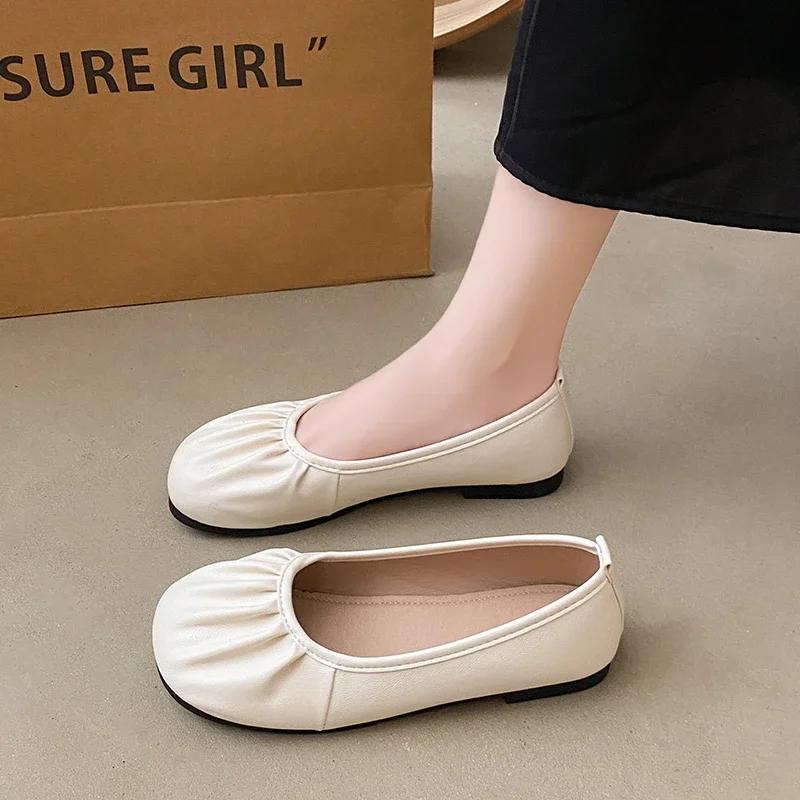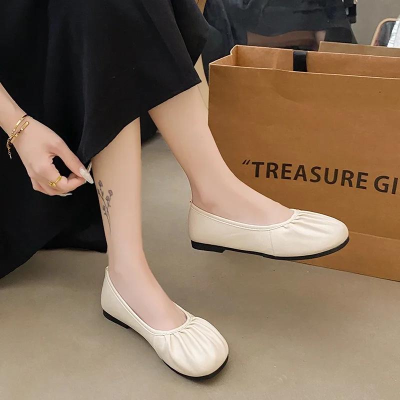 2024 Круглый носок без застежки, плиссированные, декоративные, с плоским дном, с неглубоким горлом, удобные и универсальные, популярные женские туфли-одиночки