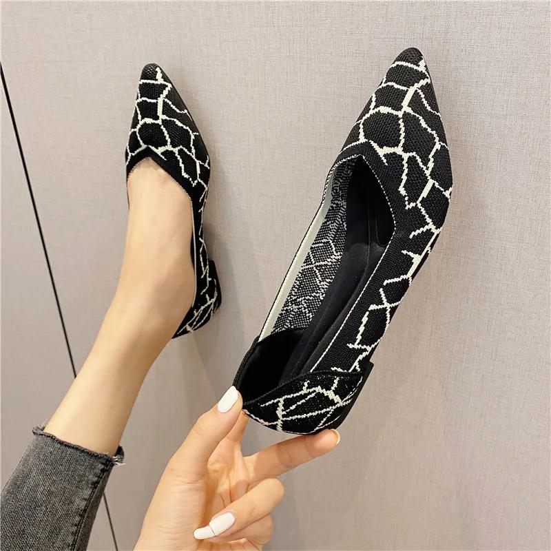 Женская весна 2025 года, новые туфли на плоской подошве, модные осенние женские вязаные остроносые удобные туфли на резиновой подошве, фирменная обувь Zapatos Mujer — купить товар онлайн с бесплатной доставкой по всему миру!