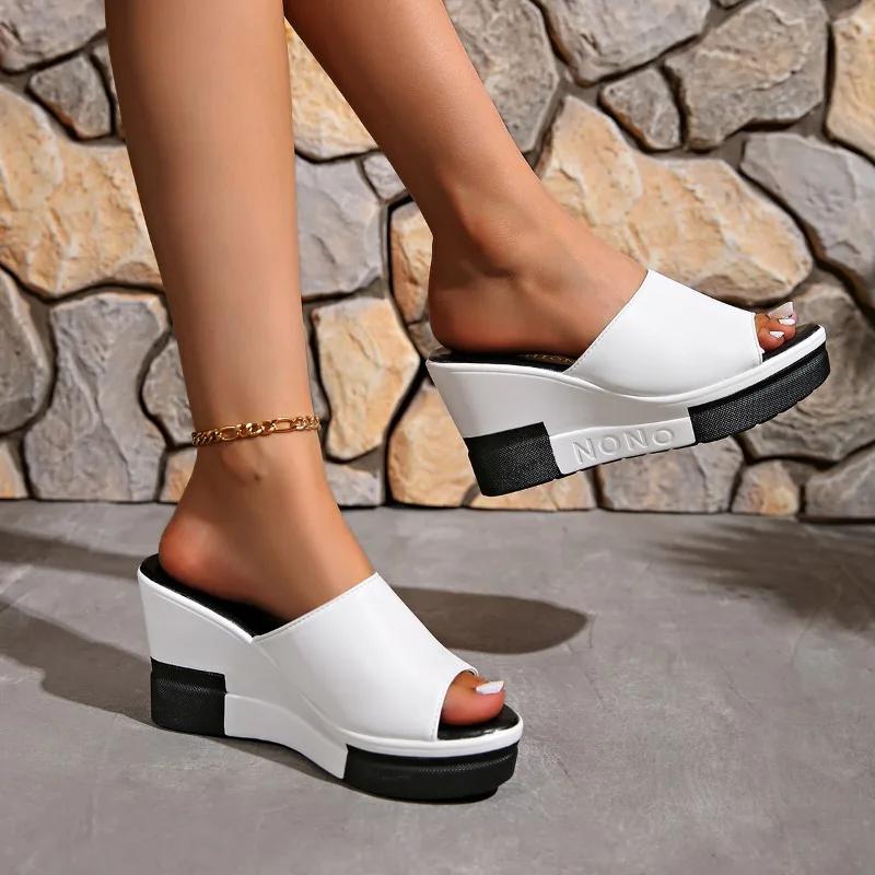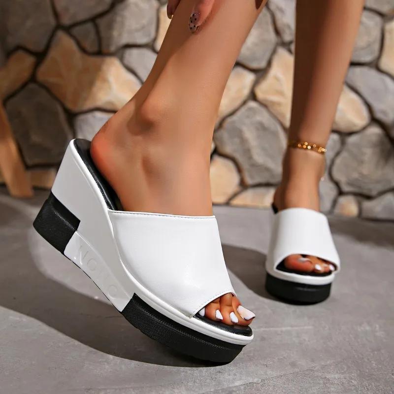 Обувь женская 2024 Высококачественные женские тапочки для улицы Повседневные тапочки на платформе Женские сандалии с круглым носком на высокой танкетке